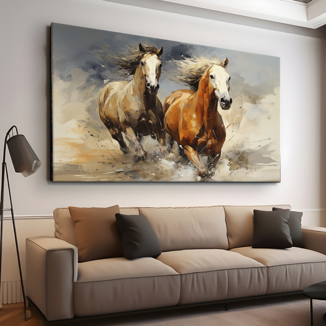 Bring the majestic beauty of horses into your space with this stunning canvas printed painting. Ideal for nature and animal lovers, this piece captures the spirit and elegance of horses in vivid detail.