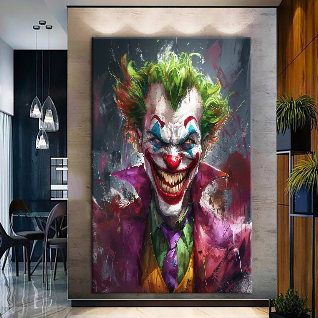 This Joker canvas print adds a dynamic and modern touch to any setting. Whether displayed as-is or customized to your liking, it makes a powerful statement in your space.