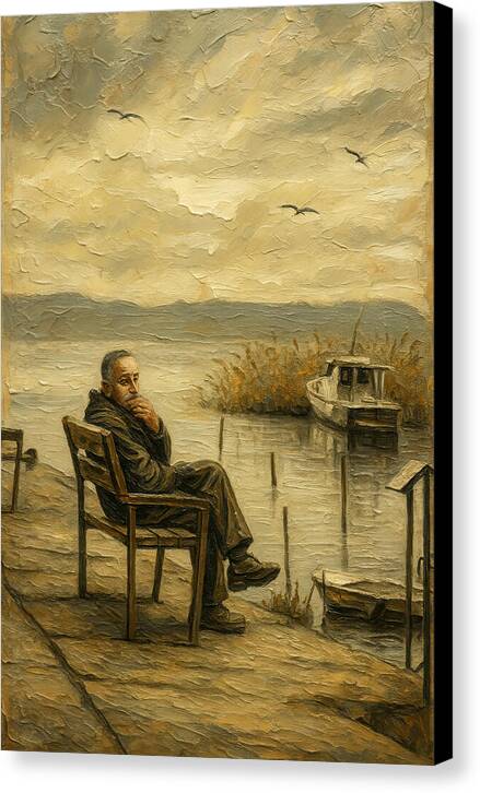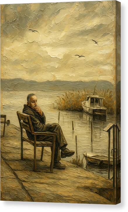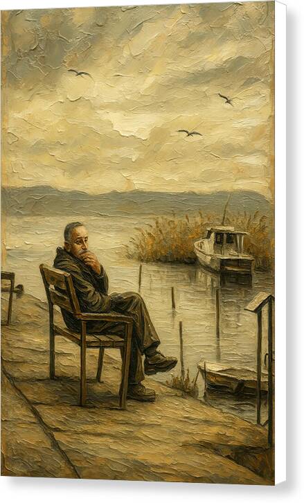 Contemplative Man by Lakeside - Canvas Print – Iloski Art LLC