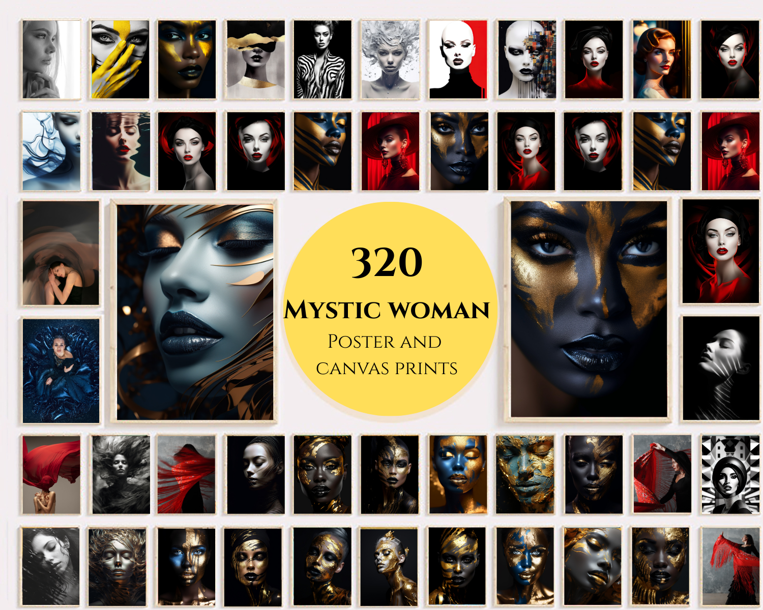 Turn any space into a statement with this 320+ piece gallery of mystic, modern, and high-fashion women’s portraits — perfect for posters, canvas prints, and wall collages. Whether you're a digital art collector, POD seller, or home decor enthusiast, this ready-to-print collection delivers maximum visual impact.