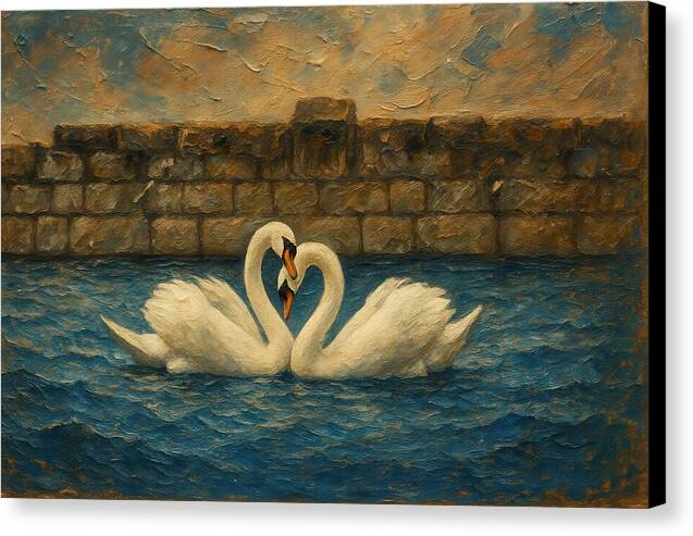 Lake Ohrid Swans in Serene Waters - Canvas Print – Iloski Art LLC