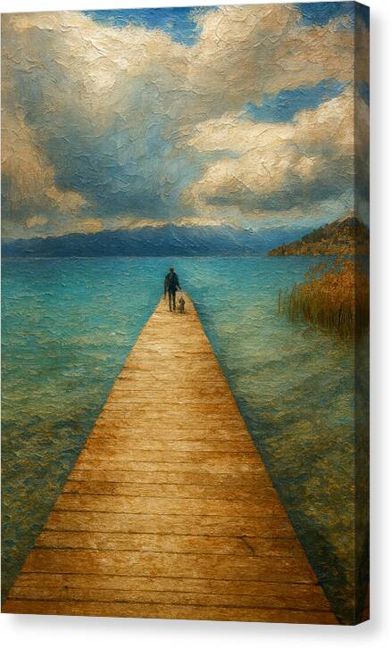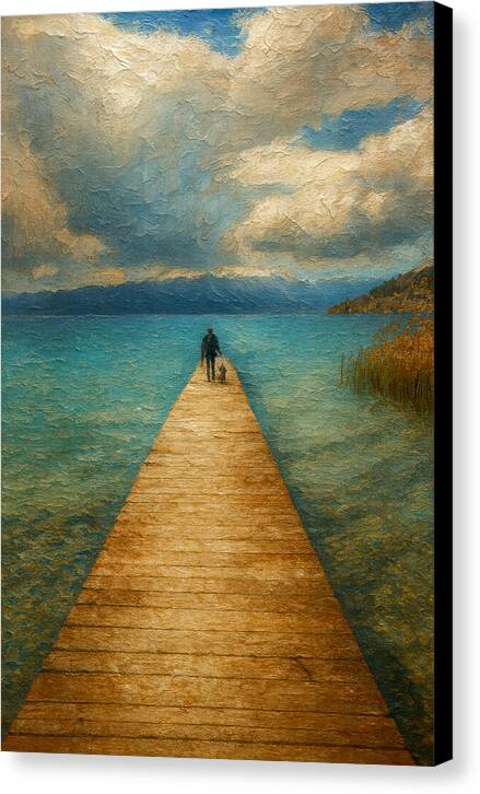 Man and Dog on a Wooden Pier Ohrid - Canvas Print – Iloski Art LLC