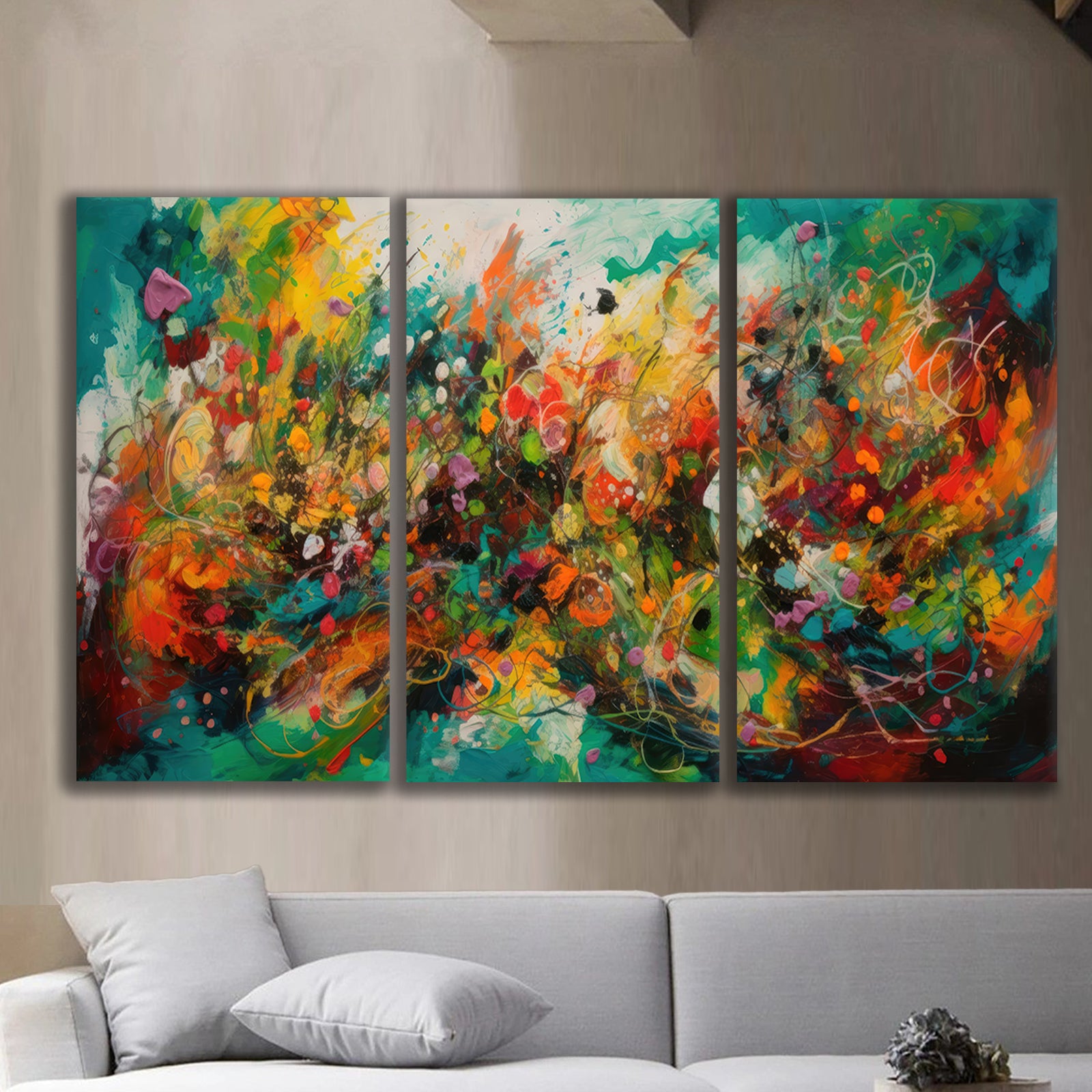 The artwork is printed on high-quality canvas, delivering vibrant, lasting colors and exceptional durability. These unframed and unscreened canvases come in separate pieces, providing the flexibility to display them as individual artworks or as part of a larger, unified composition.