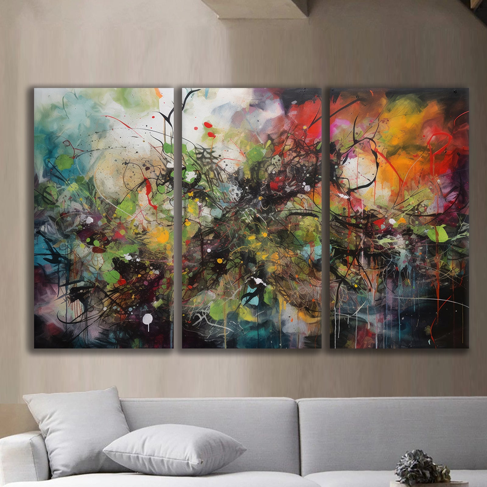 The artwork is printed on high-quality canvas, delivering vibrant, lasting colors and exceptional durability. These unframed and unscreened canvases come in separate pieces, providing the flexibility to display them as individual artworks or as part of a larger, unified composition.