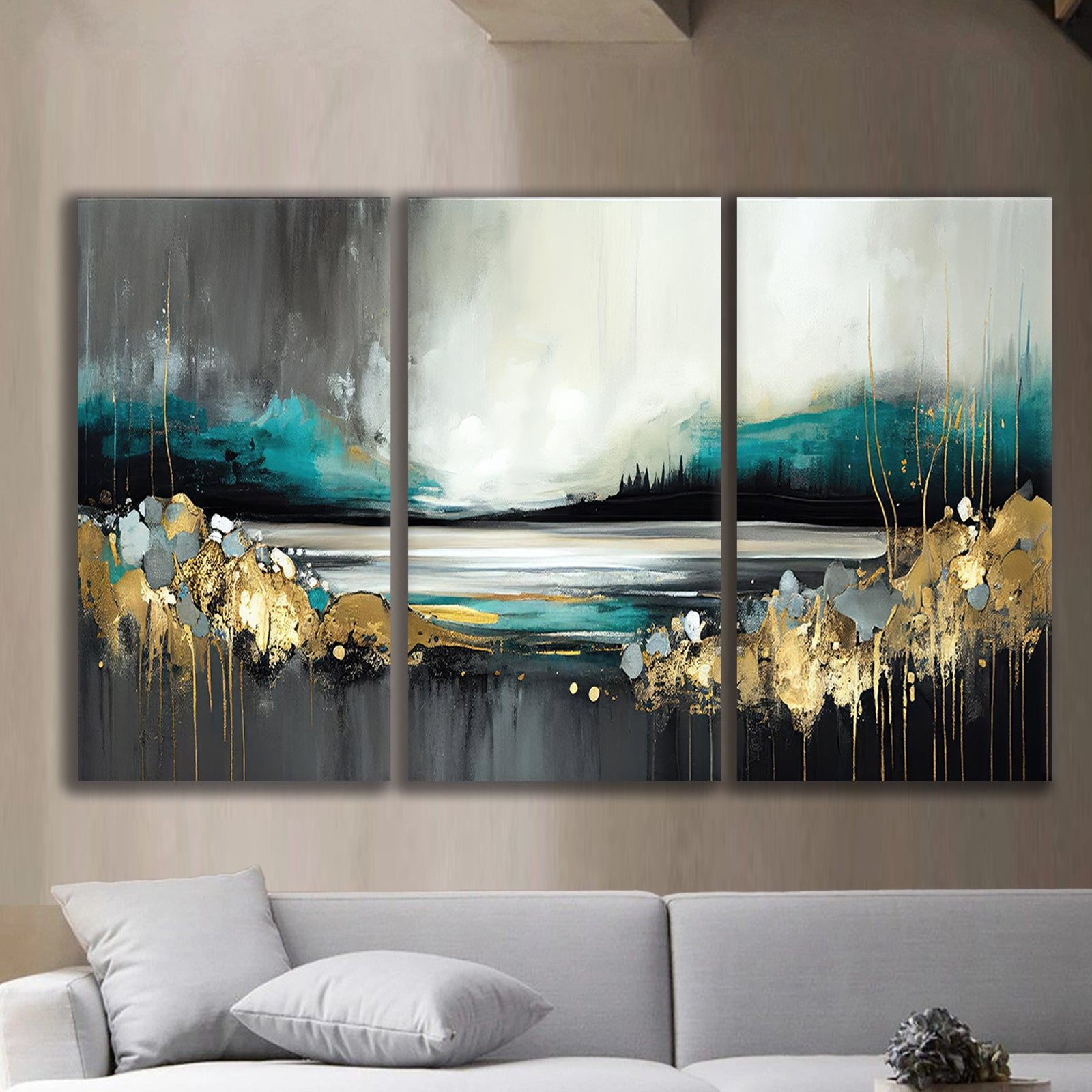 The artwork is printed on high-quality canvas, delivering vibrant, lasting colors and exceptional durability. These unframed and unscreened canvases come in separate pieces, providing the flexibility to display them as individual artworks or as part of a larger, unified composition.