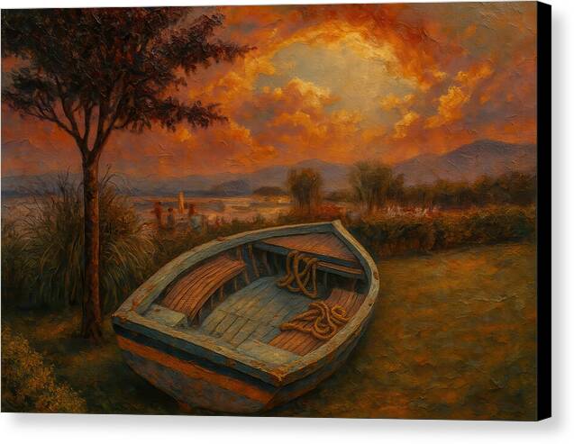 Sunset over Abandoned Rowboat Ohrid - Canvas Print – Iloski Art LLC