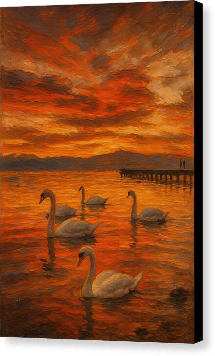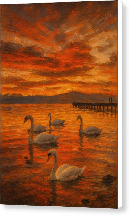Sunset Over Ohrid Lake with Swans - Canvas Print – Iloski Art LLC