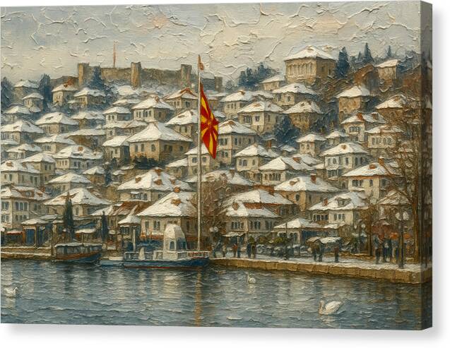 Winter Scene with Macedonian Flag Ohrid Lake - Canvas Print – Iloski Art LLC